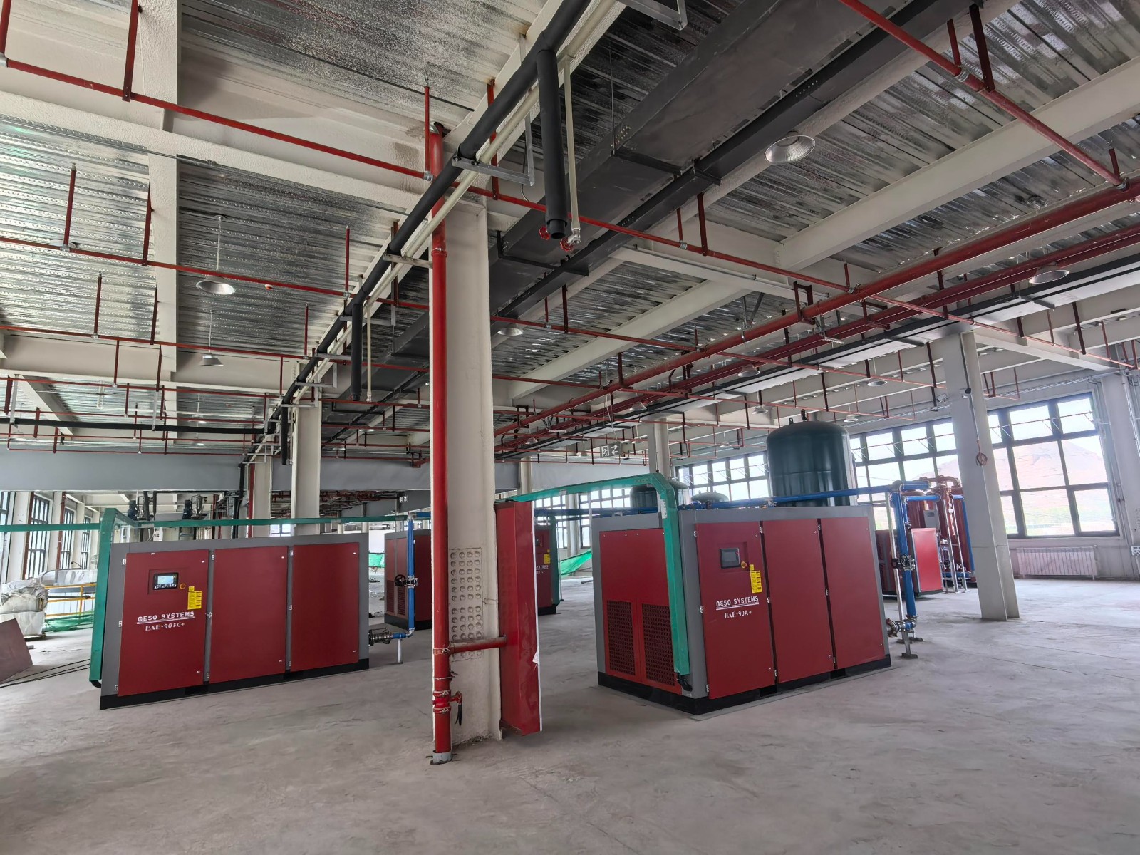 Three air compressors on site, two frequency conversions in trial operation, because the total power capacity of the customer's site is insufficient, resulting in the 90KW power frequency air compressor being unable to operate