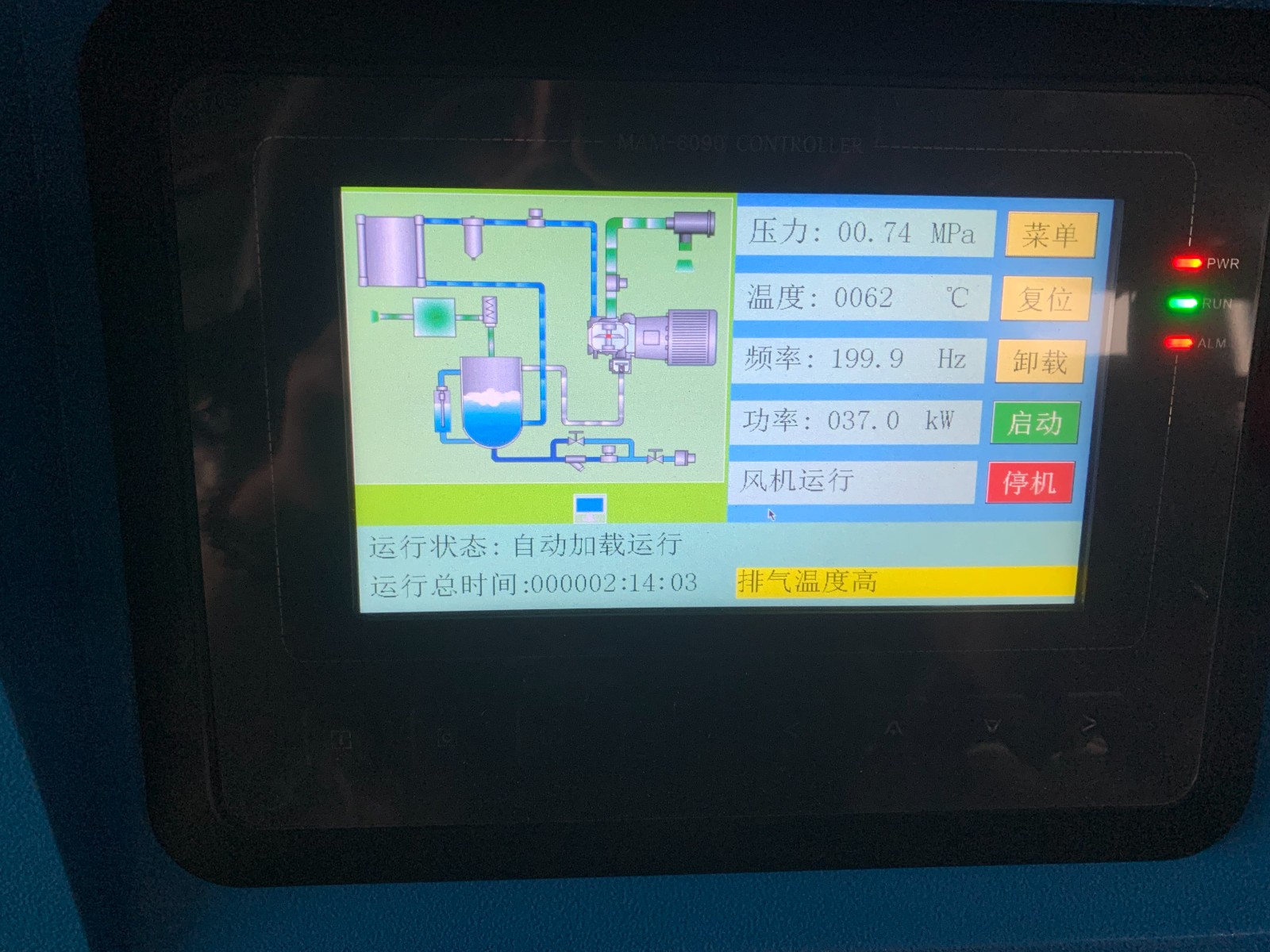 Startup commissioning completed. Equipment is operating normally. Ambient temperature is excessively high; it is recommended that the client install a ducting hood.