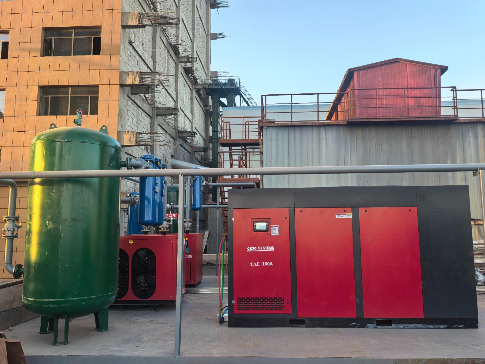 The EPC contractor representative has delivered documents for the four air compressors and air receivers to the Xinjiang site; on-site acceptance cannot be conducted. A video conference confirmation is scheduled for tomorrow. Commissioning work has been completed. Equipment is operating normally.
