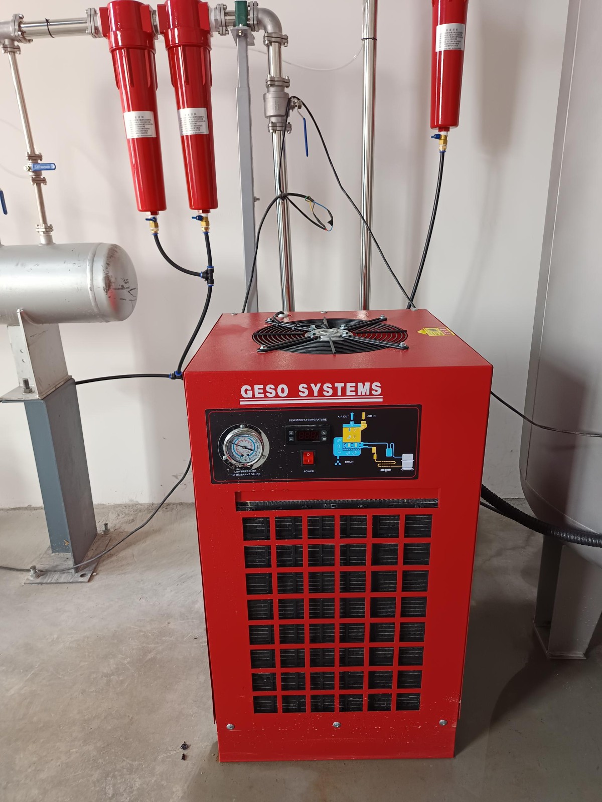 Air compressor pipeline installation completed. Startup and commissioning finished. Equipment operating normall