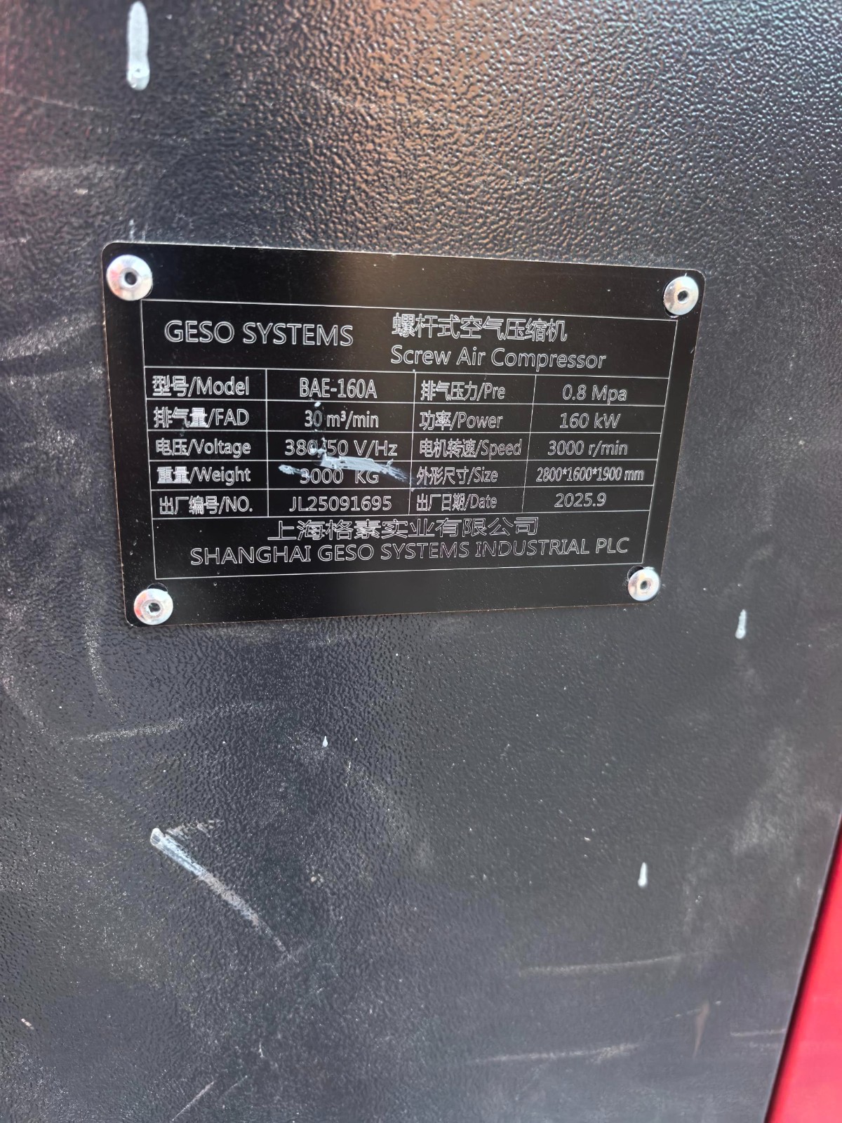 The EPC contractor representative has delivered documents for the four air compressors and air receivers to the Xinjiang site; on-site acceptance cannot be conducted. A video conference confirmation is scheduled for tomorrow. Commissioning work has been completed. Equipment is operating normally.